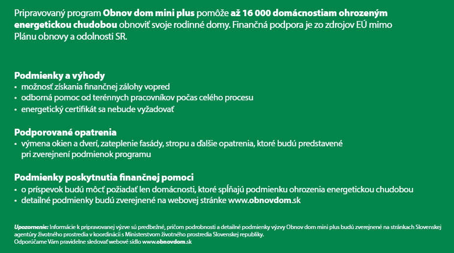 Srdečne Vás pozývame na predstavenie výzvy Obnov dom mini plus